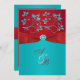 This modern monogrammed turquoise blue and red floral wedding invitation has a red PRINTED ribbon and a PRINTED diamonds and aqua blue jewel buckle on it. It would be perfect for a spring, summer, or fall wedding, and would even work nicely for an elegant destination wedding. ALSO, if you re-size the invitation, or if you change fonts, or the size of the font, some of the design and/or text may get cut-off. Everything will print as you see it on your monitor. I will not see your invitation, and Zazzle will NOT correct anything (typos, mis-alignment etc.). The text and paper is all customisable. If you need help with this invitation, please email me BEFORE you place your order. If you require any other matching items, please email your request to niteowlstudio@gmail.com.