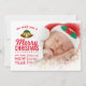Red Typography Overlay Baby First Christmas Photo Holiday Card