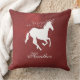Transform your living space with this enchanting Red Unicorn Personalised Throw Pillow, a perfect blend of whimsy and elegance for unicorn theme home accents. This unicorn home decor piece features a mesmerising star-filled night sky background, with a majestic galloping unicorn gracefully galloping with a radiant star trail following behind. The celestial theme evokes a sense of wonder, with elegant script to personalise with your name or gift recipient's name, ensuring this pillow is as unique as your style. This mythical design blends charm and sophistication, making it a must-have for unicorn enthusiasts and celestial dreamers alike. Perfect for cosying up your sofa, bed, or favourite armchair, this throw pillow elevates your decor with magical allure.