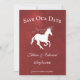 Personalise a unique wedding announcement with a Red Unicorn Save the Date. Announcement design features a starry background with a unicorn adorned with stars and text you can personalise with your wedding date details. Additional save the date announcement available for this design in a variety of colours. If you need assistance with personalisation, please contact me directly.