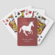 Personalise a unique wedding favour for guests with a set of Red Unicorn Wedding Favour Playing Cards. Playing card design features a starry background with a unicorn adorned with stars. Personalise with the groom and bride's names along with the wedding date. Additional wedding stationery available with this design as well.