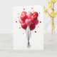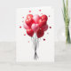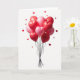 This design shows a bunch of red and pink balloons floating on a plain white background. Some balloons are round, and a few are heart-shaped, giving the whole card a romantic feel. The balloons look shiny, with light reflections that make them seem softly lit and smooth. Thin dark strings hang down from the balloons and come together in a small bundle near the bottom. Smaller heart shapes are scattered around the main group, like little love notes drifting in the air. There isn’t any text on the front, so the picture is the main message. It feels sweet and cheerful, perfect for a simple Valentine’s hello 💕❤️.