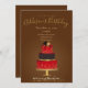 Beautiful Red Velvet Birthday Invitation featuring a red, black, and gold layered cake with gold sparkles.