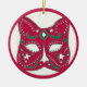 Red Venetian Cat Mask Design Ceramic Ornament