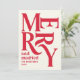 Red retro vintage graphic typography merry and married Christmas wedding announcement card. Part of a bold fun holiday collection.