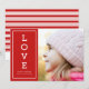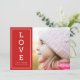 Send your friends and family "Warm Wishes" this Christmas/Holiday season with this red minimalist Holiday photo card that features the word "Love" vertically. Card also includes a patterned back side.