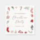 The napkins are adorned with red, white and green, Christmas themed watercolor illustrations, such as stockings, gifts, hot chocolate, candy cane, ornaments and others, that dance playfully around the edges, creating a festive and charming frame. These delightful illustrations evoke the spirit of the holidays, adding a whimsical touch to your Christmas party napkins.