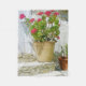 Red watercolor geranium in blossom in front of the stone wall in Cyprus