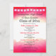 This vertical format high school class reunion invitation design features red watercolor top and bottom borders and lanterns along the top. Personalise your information, remove information or click customise to select a typeface colour, size, and style your prefer.