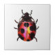 traditional watercolor artwork of a red and black colored ladybug on a ceramic tile.