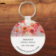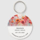 A keychain with a beautiful watercolor image. A field of red flowers with lovely watercolor drips and splotches.