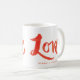 Red hand painted Love in script lettering with easy to customise text below it makes this simple white mug a charming and fun gift for the one you love or the couple you admire on Valentine's Day or even an anniversary.