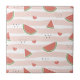 Red Watermelons, Hearts, Stripes, Summer Pattern Ceramic Tile