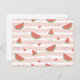Red Watermelons, Hearts, Stripes, Summer Pattern Postcard