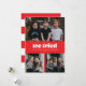 This funny, modern holiday card features the words "we tried" on a red background with a space for a photo at the top and two square photos at the bottom. Customise it with your name and the year.