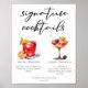 This sophisticated red signature cocktails menu poster features simple black typography above 2 of your favourite drinks and their ingredients for your coastal wedding bar. A chic Red Wedding drink and Cherry French 75 drawing add a fun flair to your bar menu. Complete with the couple's names and date for their reception.