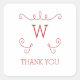 Red Whimsical Flourish Monogram Thank You Square Sticker