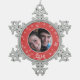 Sweet and simple Whimsical Snowflakes Holiday Photo Pewter Snowflake Ornament in red featuring a kraft paper look background and an array of delicate snowflakes surrounding a photo in the centre. Easy to customise, simply add a cute photo of your own and the text of your choosing. Click "Customise It" to find additional personalisation options.