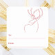 White background, and a red abstract one line reindeer. A to/from tag. space for you to write by hand.