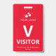 Vertical visitor badge with a simple design in white against a red background. A large white V makes it easy to quickly recognise the visitor as such. Personalise with your business logo.