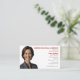 Red and black text make this business card a stand out, with a photograph of a professional woman. The example is financial planning, but could easily be adapted to real estate, health care, marketing, photographer, and many more.