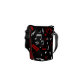 A cool, modern and eye-catching musical design featuring a random jumbled pattern of musical notes and treble clefs in red and white on a classical black background.