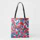 Red white and blue abstract pattern tote bag