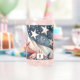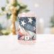 Great monogram can glass. This special glass is festive red, white, and blue (a decorative representation of some of the American symbols). Use the template to customise. Add your desired monogram or initial.