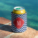 Cute trendy monogrammed can or bottle cooler with a preppy chevron pattern. Personalise it with a custom monogram or other text in a chic quatrefoil frame. Click Customise It to change text and fonts to create a unique one of a kind gift for your bridesmaids and wedding party! Contact me before ordering to customise patterns or design to coordinate with any wedding colours.
