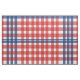 Red, white and blue gingham plaid.