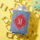 Cute trendy monogrammed can or bottle cooler with a preppy Greek key pattern. Personalise it with a custom monogram or other text in a chic quatrefoil frame. Click Customise It to change text and fonts to create a unique one of a kind gift for your bridesmaids and wedding party! Contact me before ordering to customise patterns or design to coordinate with any wedding colours.