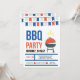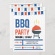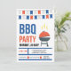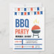 A festive barbecue invitation with red, white and blue party flags and a barbecue grill. (<a href='https://www.freepik.com/free-vector/bbq-party-invitation-in-flat-design_1701190.htm'>Designed by Freepik</a>). <br/><br/>The card is easy to customise with your wording, font, font colour, paper shape options and choice of six paper types.<br/><br/>Not exactly what you're looking for? All our products can be custom designed to meet your needs at no extra charge.<br/><br/>Simply contact us at heartfelthelper@gmail.com.<br/><br/>Coordinating products available: Just ask us!