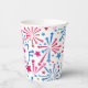 Red White and Blue Little Firecracker Birthday Paper Cups | watercolor design elements of star fireworks and rocket firecracker for a festive patriotic birthday party. "our little firecracker"