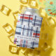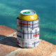 This can cooler features a patriotic - red, white and blue - madras pattern. There is a customisable area to add your own text such as family name or beach house name as well as a location.