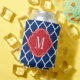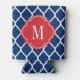 Red White and Blue Moroccan Quatrefoil Monogram Can Cooler
