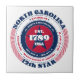 This state-themed ceramic tile is not only patriotic but also informative. It features the state name, capital, nickname of its residents, region, time zone, and coordinates, it's a great resource for travelers or those interested in North Carolina. Perfect for souvenirs or gifts.