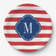 Red White and Blue Patriotic Stripes Monogram Paper Plate