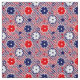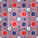 Red, white and navy blue pickleballs on 3-coloured Turing style background.
