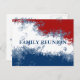 Invite everyone to the reunion with this colourful red, white, and blue postcard. Back of the card has text placeholders for name, time, date, location, remarks, and RSVP. Send it out for family, class, or club reunions.