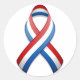 An original red, white, and blue awareness ribbon, simple and attractive, for 9/11 heroes and victims, patriotism, safety, and the United States of America (USA). Its curvaceous lines add an active, accessible tone to any awareness message.