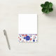 These colourful soccer Post-it® Notes (4" x 6") feature randomly arranged red, white and blue traditional style soccer balls of varying sizes at the bottom edge and overlying customisable name and monogram on a coordinating blue circle pendant and jersey number on one of the soccer balls - by katz_d_zynes