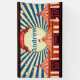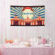 Cool Circus Theme design features 3 red and white striped Big Top with blue and white retro burst background.Red star border. Great for Birthday or any circus or carnival themed event. Customise with your own Name/Text and Age. 2022 Miss Sassy Party Designs