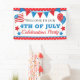 Red, White and Blue Stars, balloons and Flag 4th July design with red and white starry background