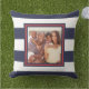Red, White, and Blue Stripe Pattern with Photo Outdoor Throw Pillow.