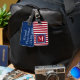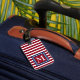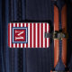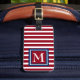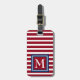 Classic red and white stripes with a patriotic red, white and blue monogram on the front and solid blue with white text on the back. Personalise the monogram on the front with your choice of initial and the contact information on the back.