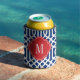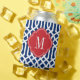 Cute trendy monogrammed can or bottle cooler with a preppy trellis pattern. Personalise it with a custom monogram or other text in a chic quatrefoil frame. Click Customise It to change text and fonts to create a unique one of a kind gift for your bridesmaids and wedding party! Contact me before ordering to customise patterns or design to coordinate with any wedding colours.