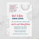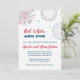This gender neutral baby shower invitation is perfect for a Fourth of July party. This Red, White and Due design features colourful fireworks and fun type.