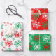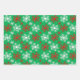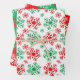 Red White And Green Snowflake Pattern Wrapping Paper Sheet