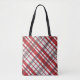 Red White and Grey Diagonal Tartan Plaid Tote Bag