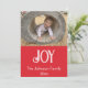 This is a modern and colourful card for the holidays. The front features a single photo with modern and simply typography. The first line reads JOY. The front also contains your family name and the year. The back of the card features an all over pattern in the same red with silver swirls for a stylish touch. Coordinating items available in my store.